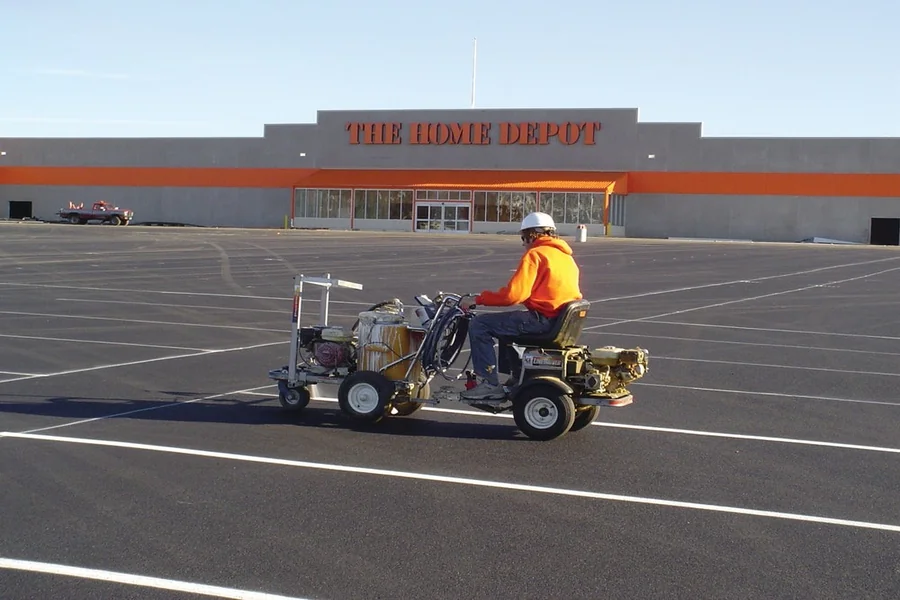 Proper surface preparation is key—contractors clean the lot thoroughly before applying any paint to ensure adhesion and clean edges.
